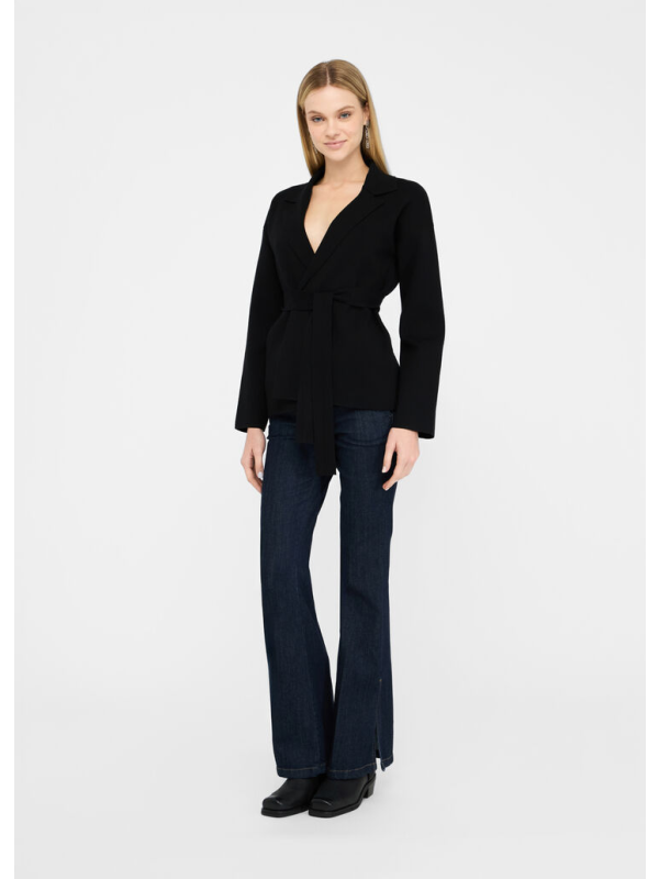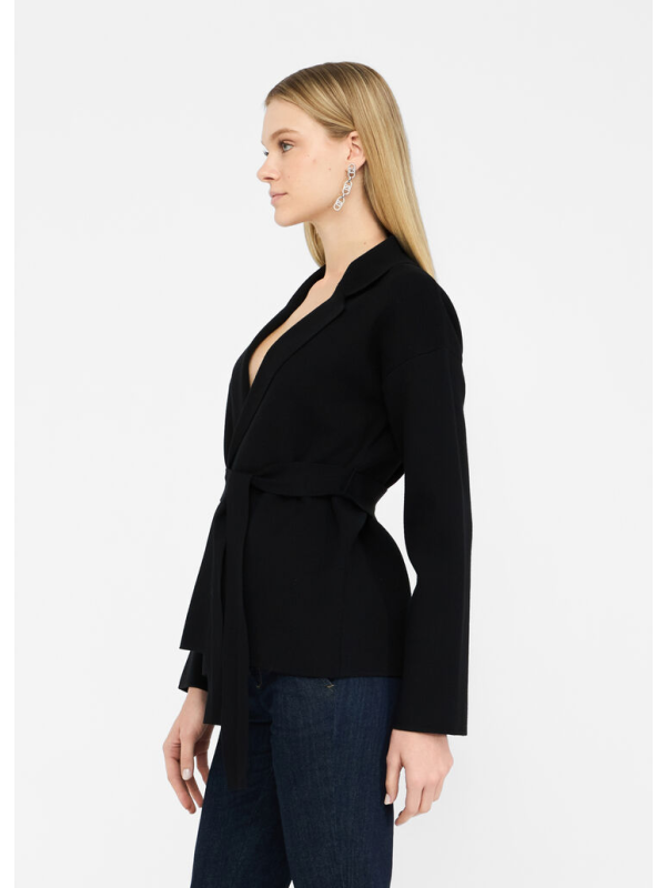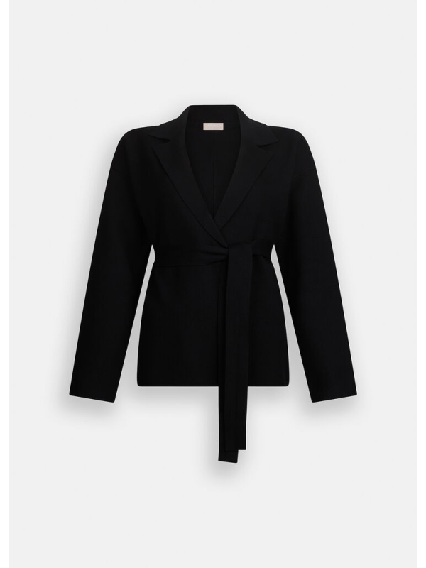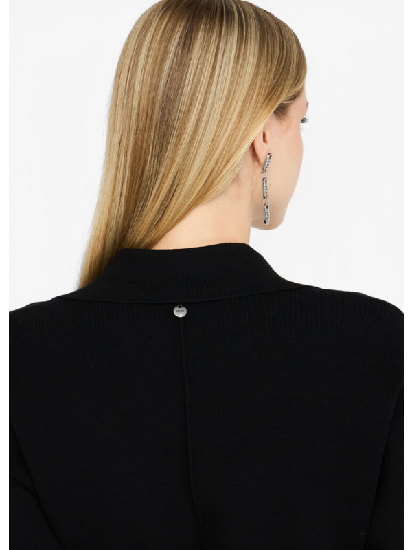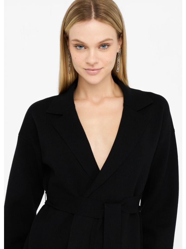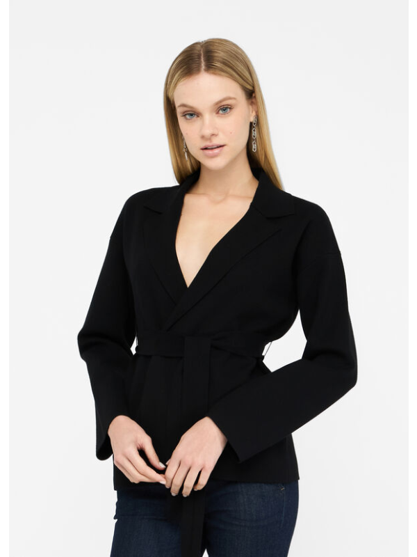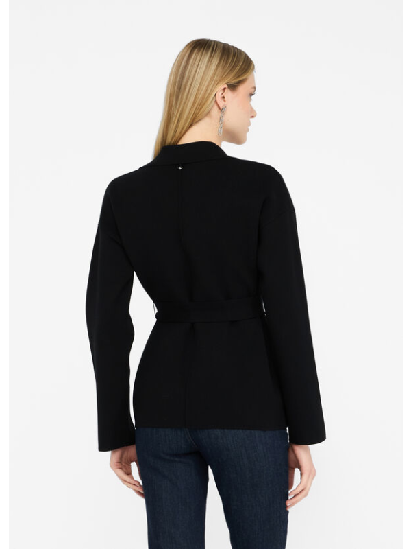 Ženska crna Liu Jo pletena jakna s klasičnim reverima i remenom u tonu