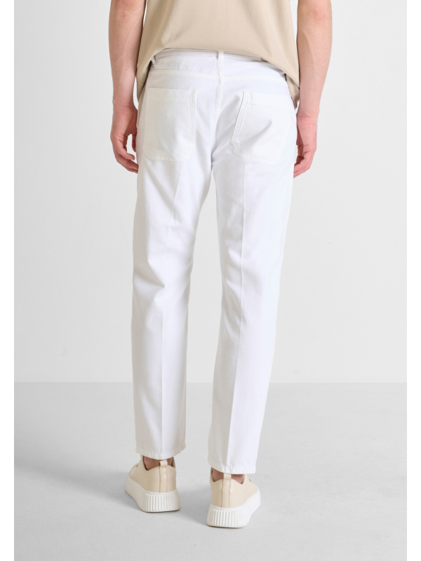 Standardni kroj, sa središnjom prugom, daje vam slobodu kretanja zbog koje ćete se osjećati samouvjereno u svakoj situaciji. Kopčaju se u struku skrivenim gumbima i središnjim gumbom, dok je stražnja zakrpa s logotipom – upečatljiv stilski detalj – našivena na stražnji pojas. Nosite ove traperice i doživite ljeto sa stilom i lakoćom.