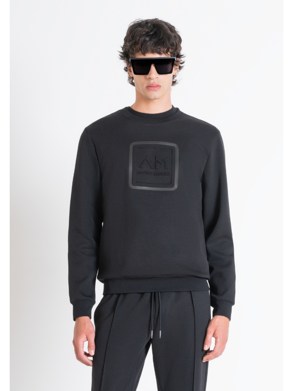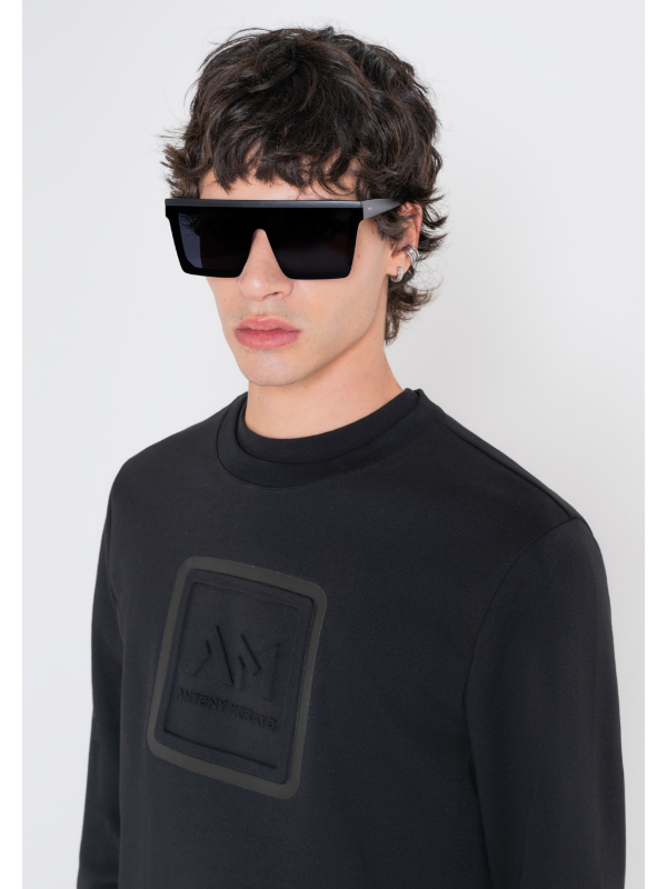 Muška crna Antony Morato majica dugih rukava s reljefnim logom na prsima