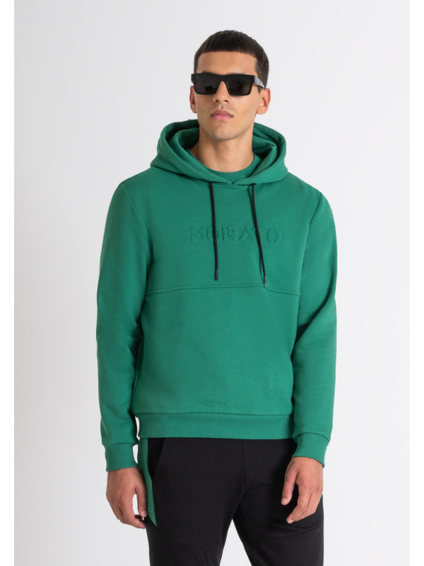 Muška Antony Morato zelena duksa s kapuljačom i utisnutim maxi logom na prsima