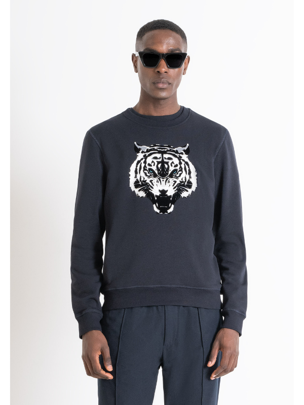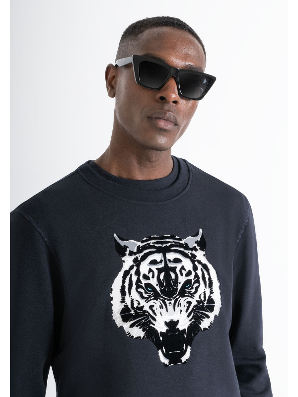 Muška tamnoplava Antony Morato majica dugih rukava s printom tigra na prsima