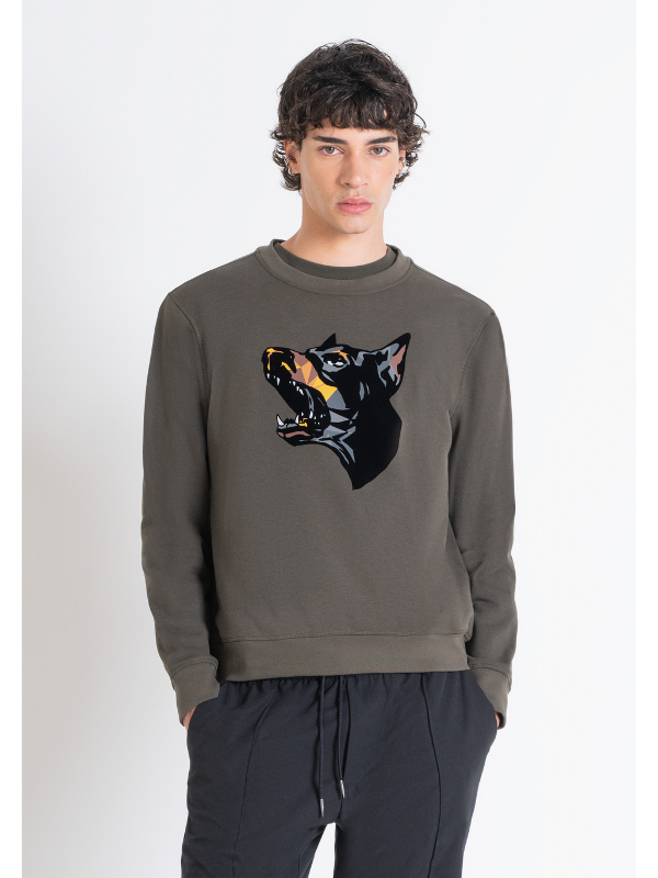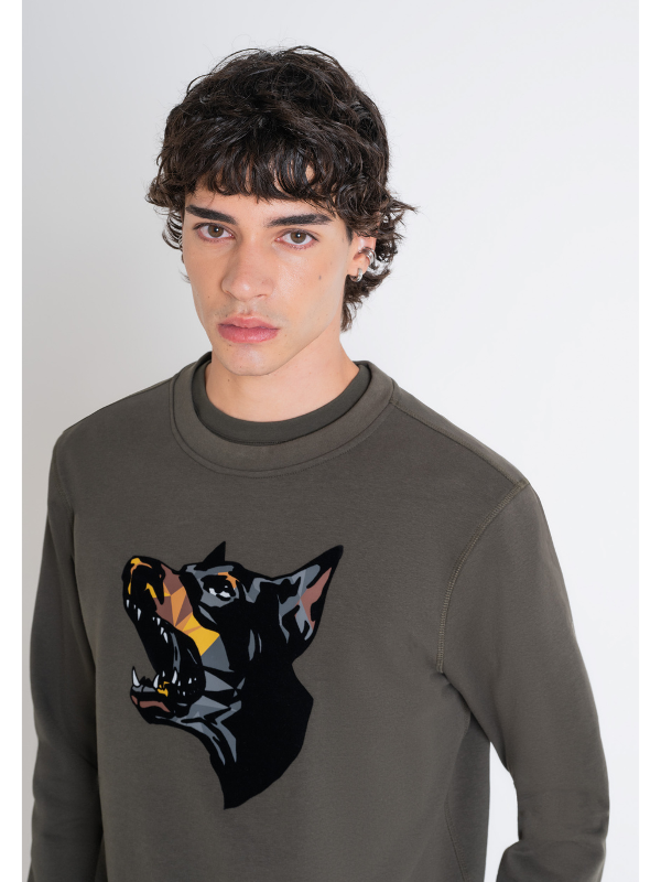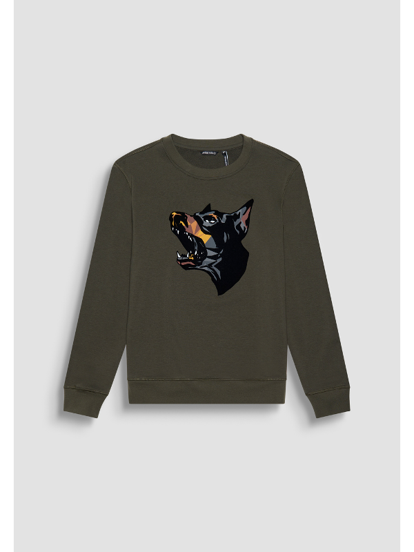 Muška tamnozelena Antony Morato majica dugih rukava s doberman printom