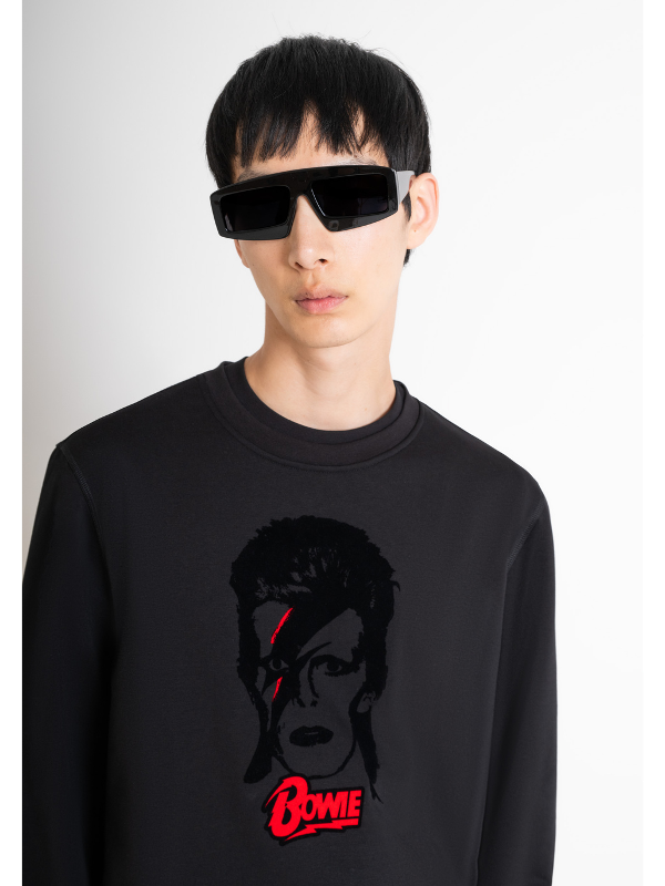 Muška crna Antony Morato "David Bowie" majica dugih rukava s printom na prsima