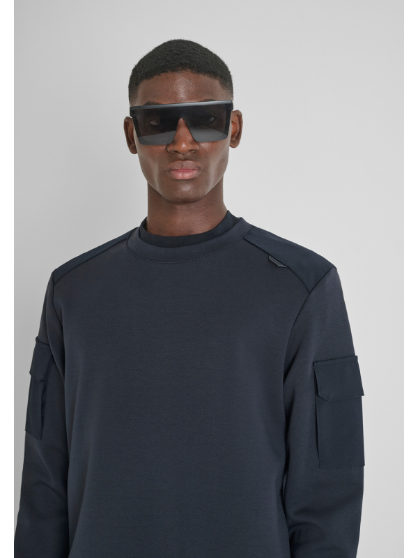 Majica ima umetke od kontrastne tkanine na rukavima i ramenima. Manžete i donji dio od elastičnog pletiva.