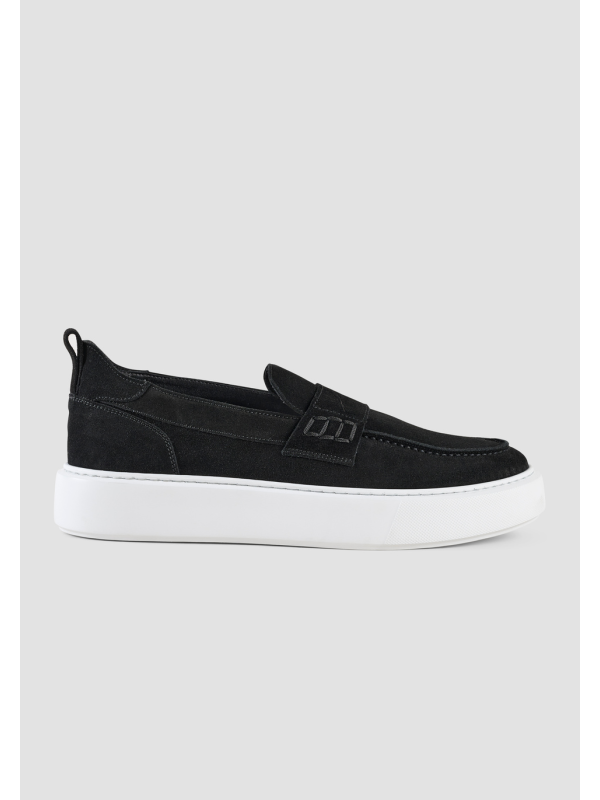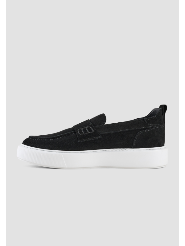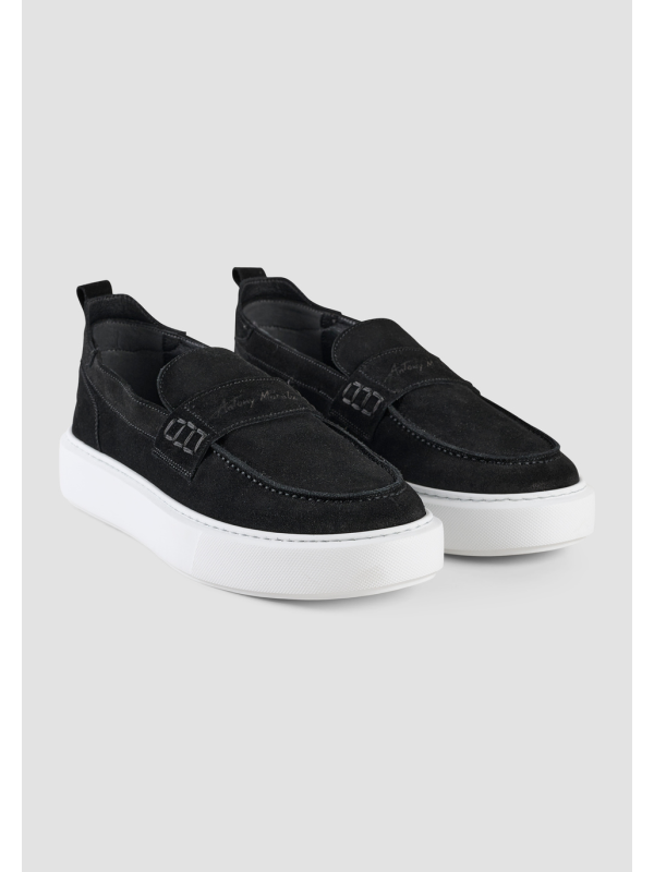Muške crne kožne Antony Morato "Rowan" mokasinke s bijelim potplatom