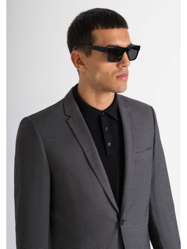 Izrađena od rastezljive tkanine od mješavine viskoze, svidjet će vam se zahvaljujući svom mikrotkanom dizajnu po cijeloj površini. Ovaj gornji odjevni predmet ima preklop, stražnji prorez i manšete s četiri gumba.
