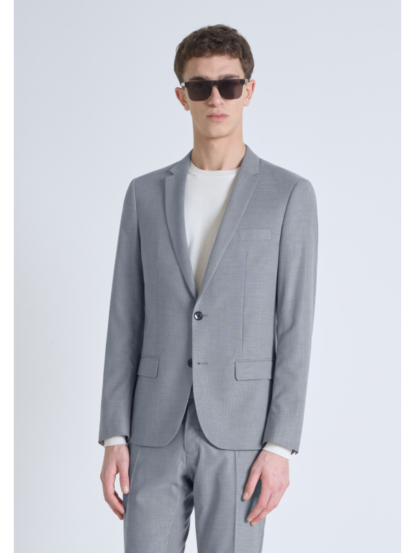 Uski jednoredni sako s kopčanjem na dva gumba, izrađen od udobne miješane rastezljive tkanine.