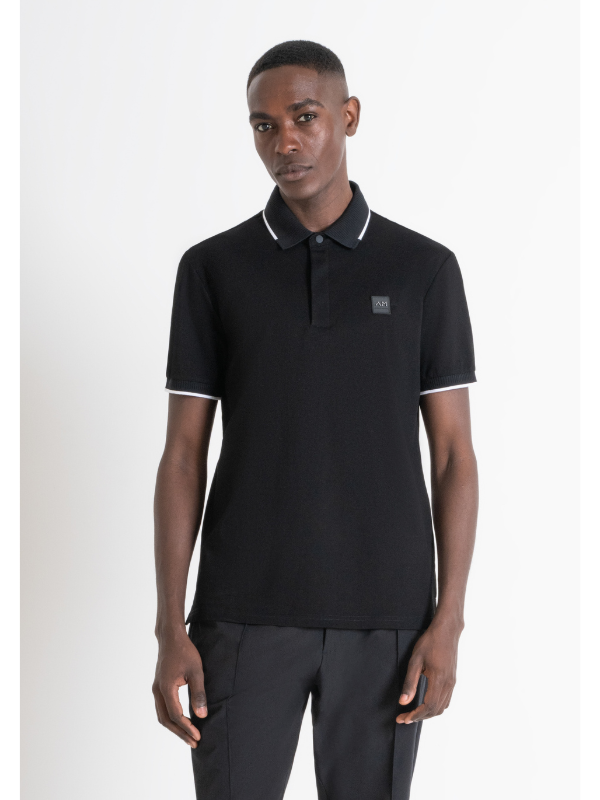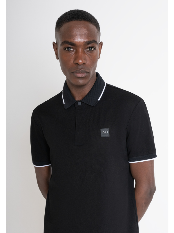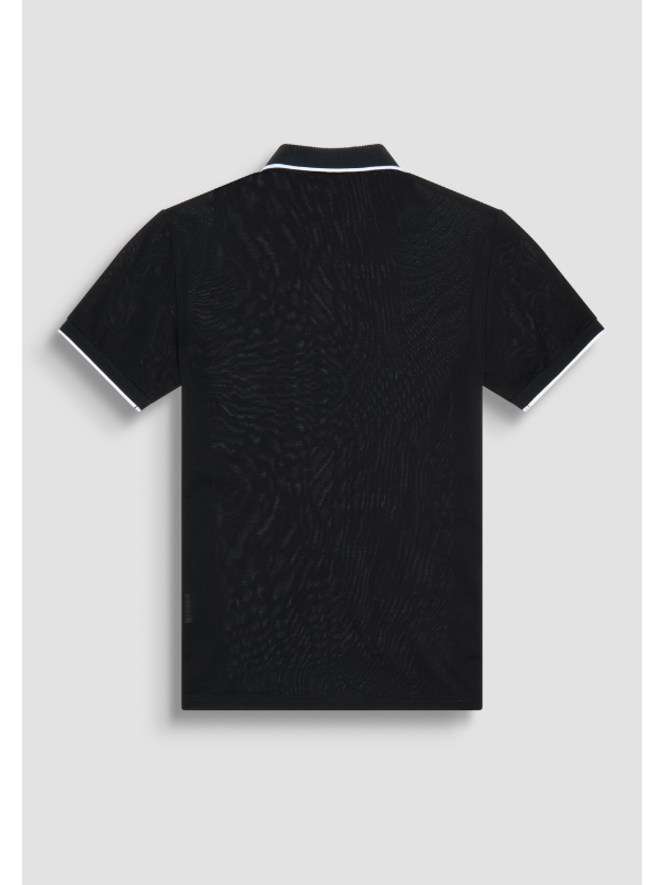 Izrađen od mekog jednobojnog pamučnog piquéa, ima liniju kontrastne boje na ovratniku i rubu rukava.