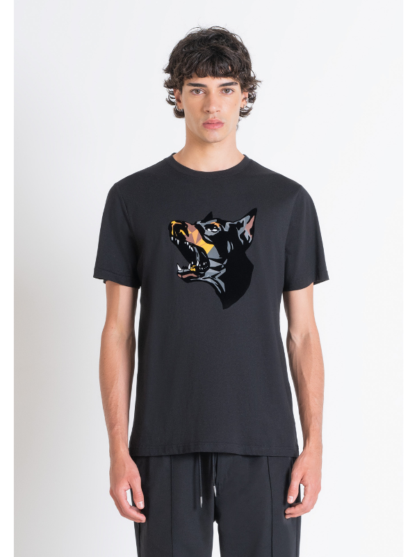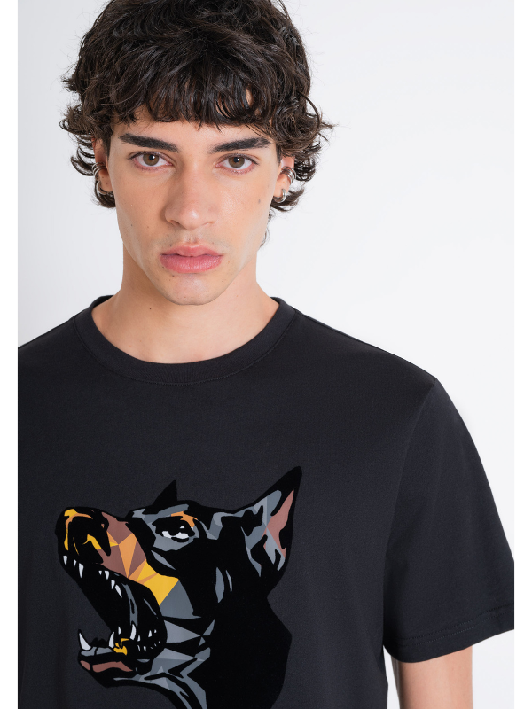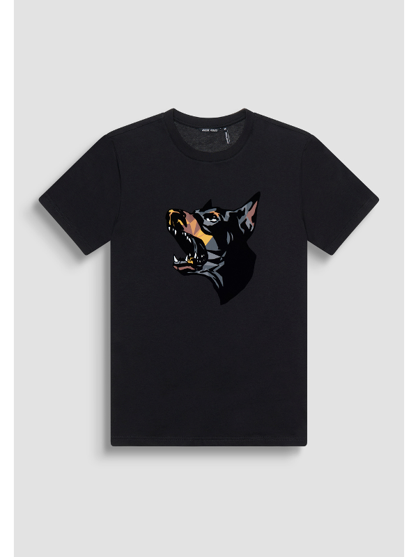 Muška crna Antony Morato majica kratkih rukava s printom dobermana na prsima