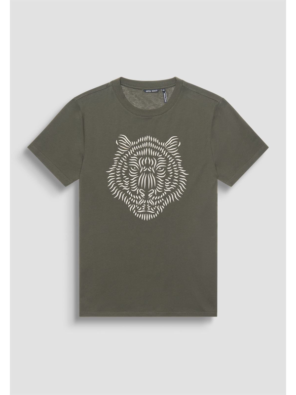 Muška tamnozelena Antony Morato majica kratkih rukava s gumiranim tigrom na prsima