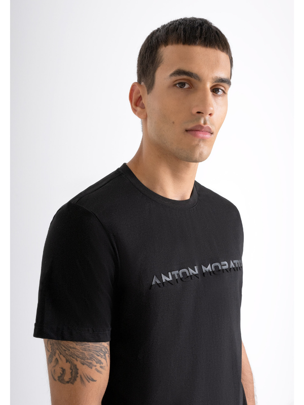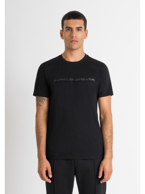 Muška crna Antony Morato majica kratkih rukava od pamučnog jerseya s izvezenim logotipom