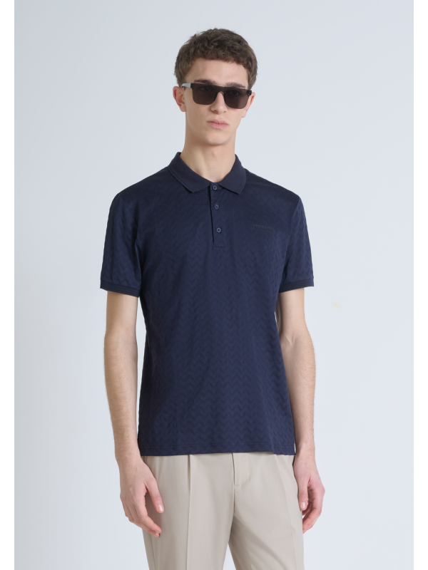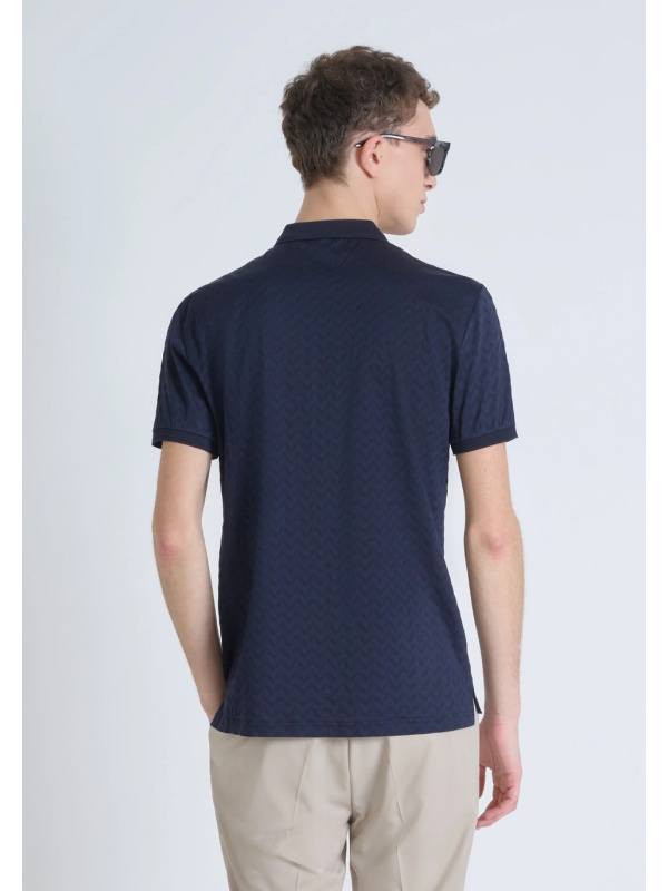 Muška tamnoplava Antony Morato polo majica kratkih rukava sa all-over uzorkom i logom u tonu