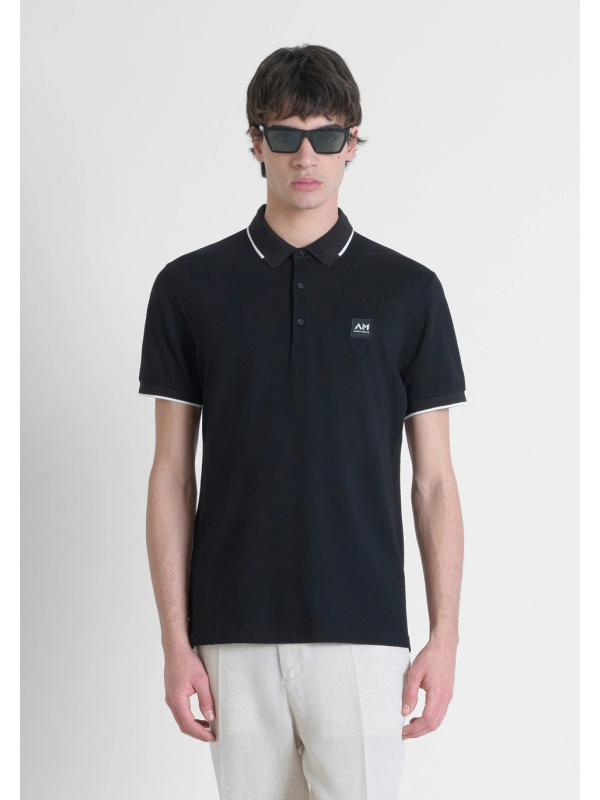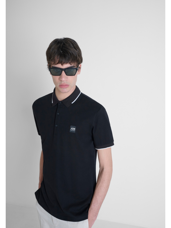 Muška crna Antony Morato polo majica kratkih rukava s logom na prsima