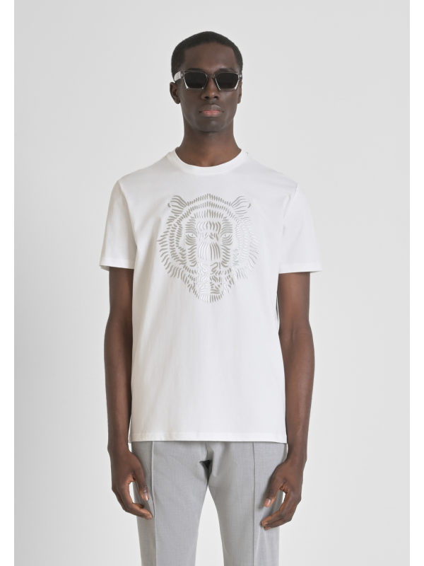 Muška prljavobijela Antony Morato majica kratkih rukava s reflektirajućim printom tigra na prsima