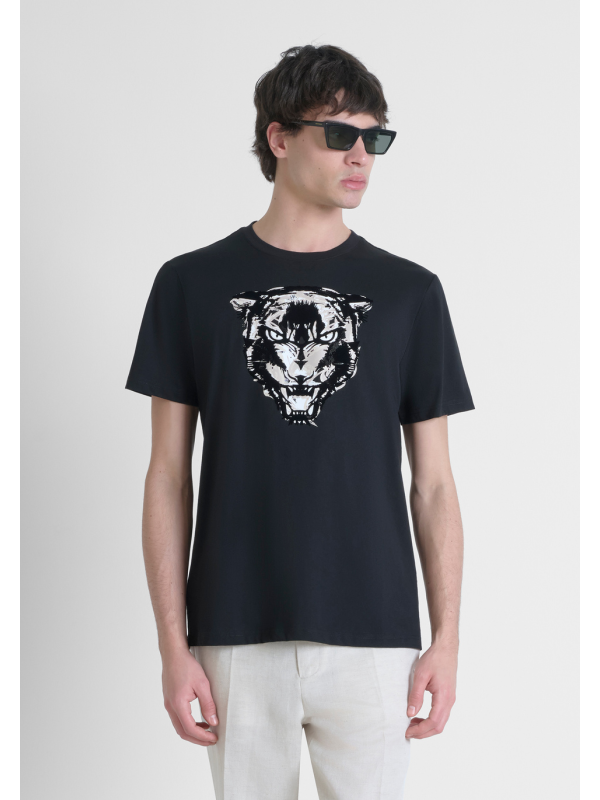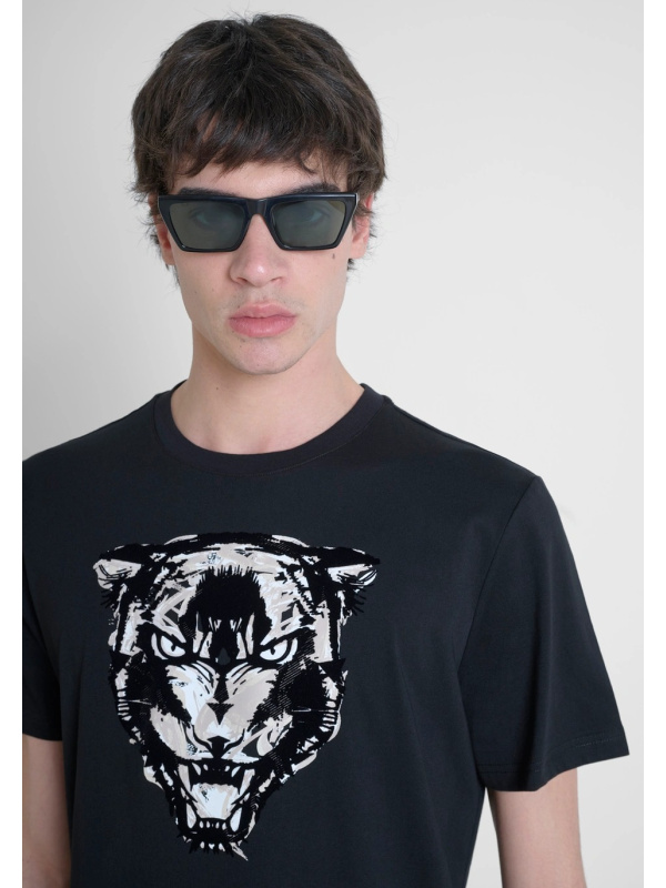 Muška crna Antony Morato majica kratkih rukava s printom tigra na prsima