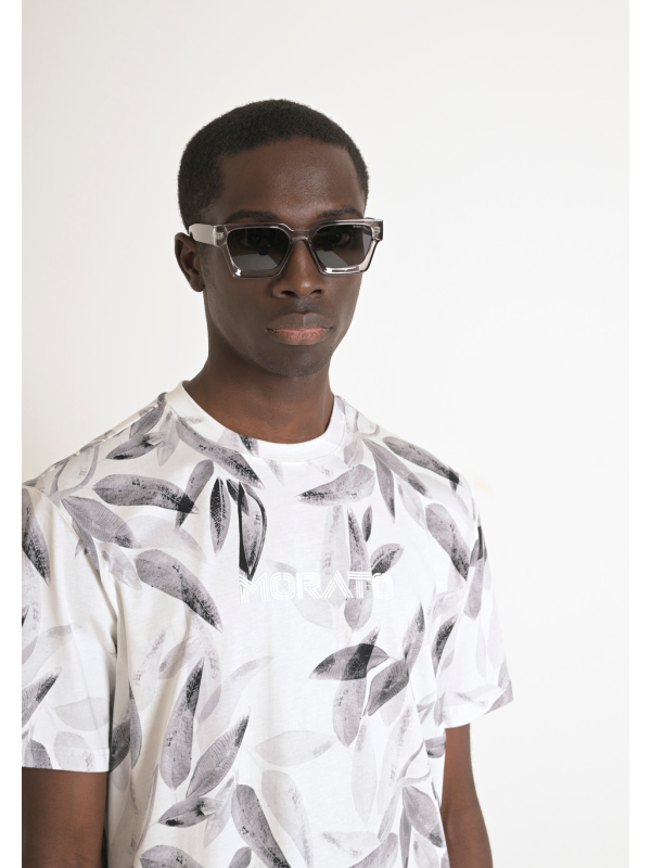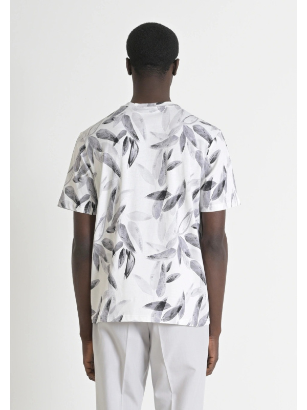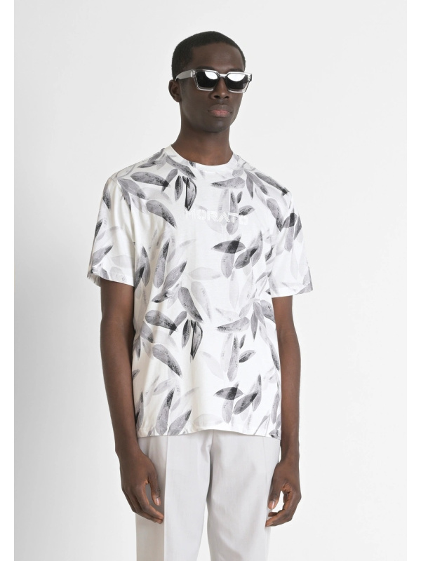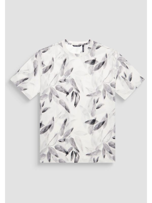 Muška krem-bijela Antony Morato majica kratkih rukava s uzorkom lišća i logom na prsima