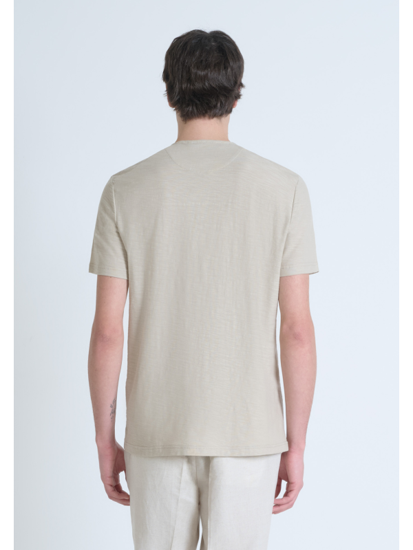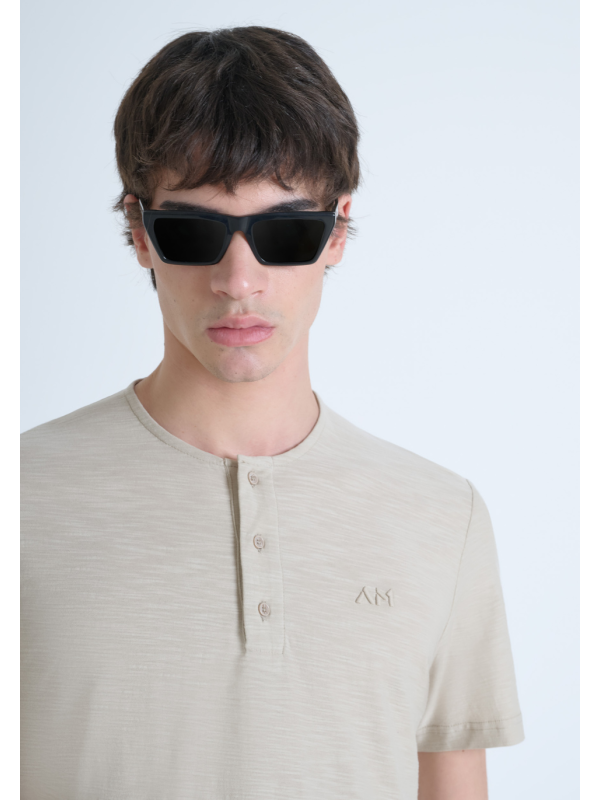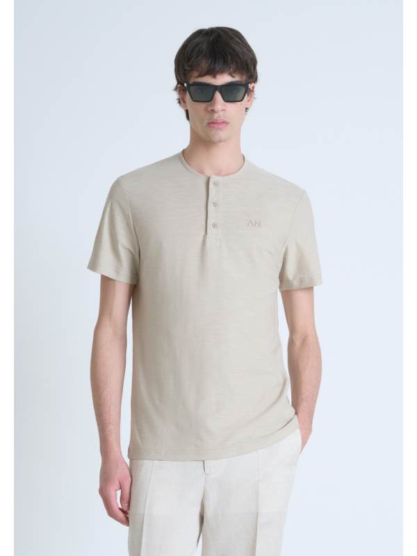 Muška Antony Morato bež majcia kratkih rukava s logom u tonu i dugmićima za zakopčavanje