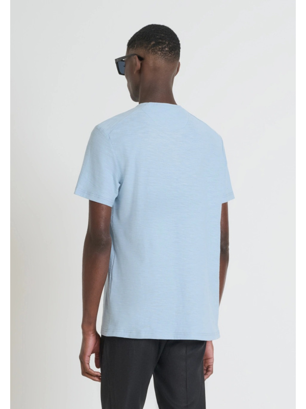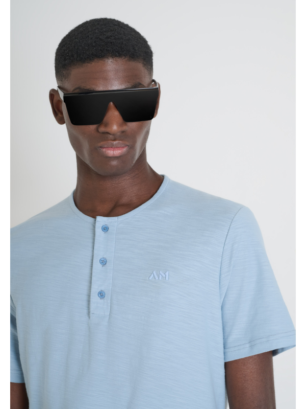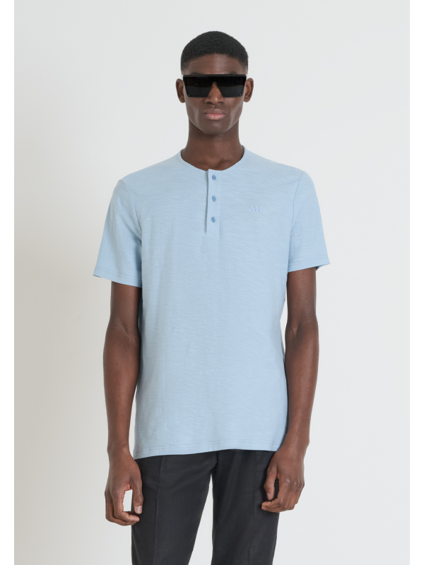 Muška svijetloplava Antony Morato majica kratkih rukava na zakopčavanje dugmadima i logom u tonu