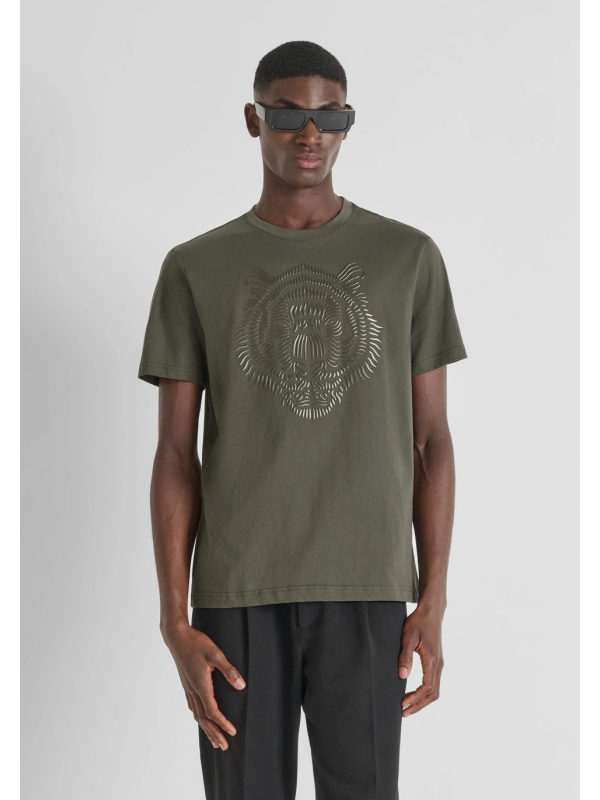 Muška dark army zelena Antony Morato majica kratkih rukava s gumiranim printom na prsima
