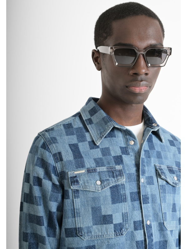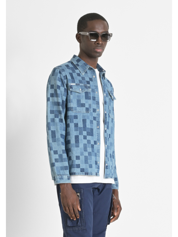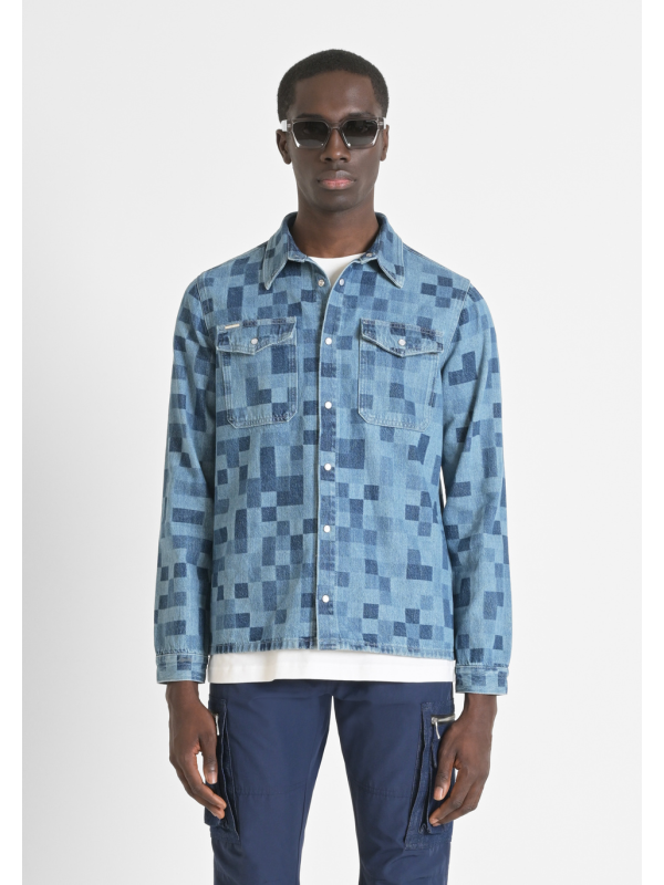 Muška svijetloplava Antony Morato košulja dugih rukava s geometrijskim uzorkom