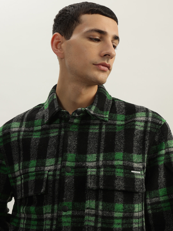 Muška karirana zelena Antony Morato košulja sa širokim ovratnikom