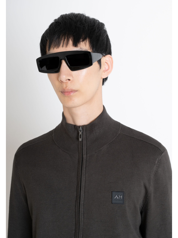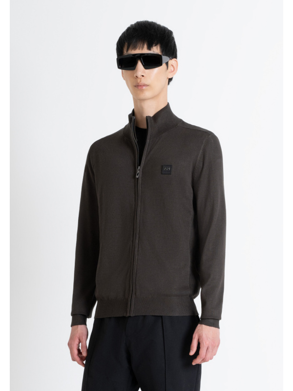 Muški tamnozeleni Antony Morato pulover sa zip patentnim zatvaračem i gumiranim logotipom