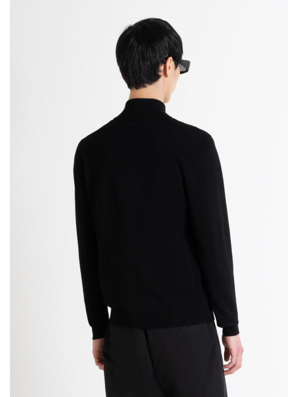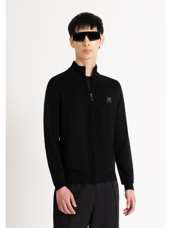 Muški crni Antony Morato pulover od mješavine viskoze s patetnim zatvaračem i gumiranim logotipom