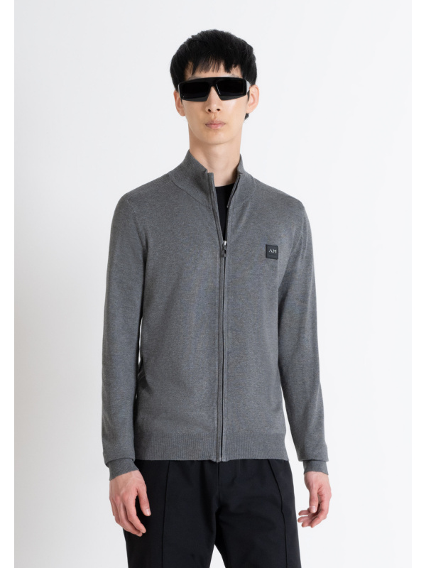 Muški Antony Morato pulover od mješavine viskoze s patetnim zatvaračem i gumiranim logotipom