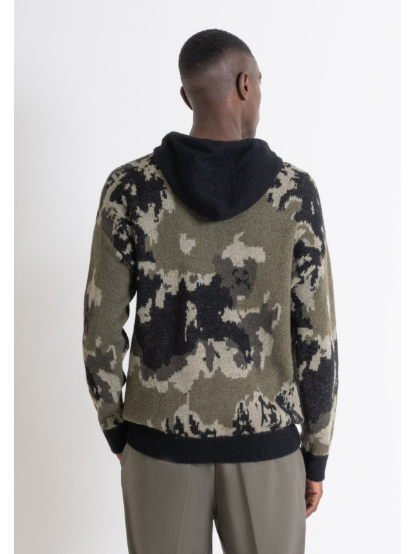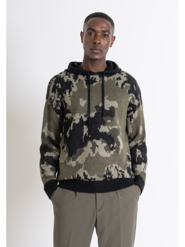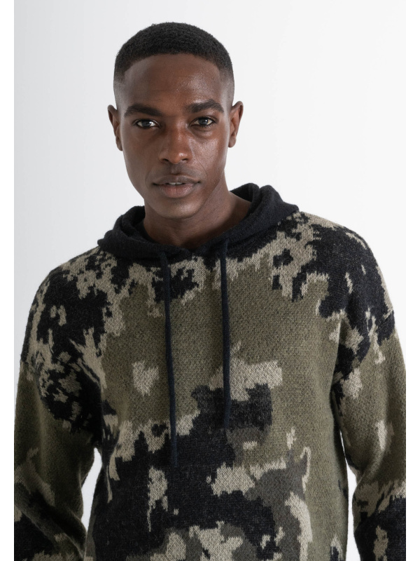 Muški zeleni Antony Morato pulover s kapuljačom od kamuflažne mješovite tkanine