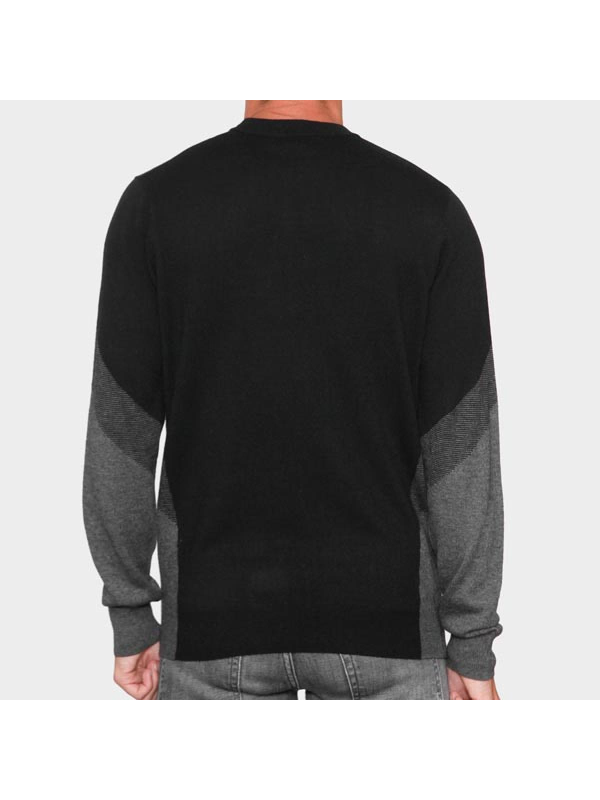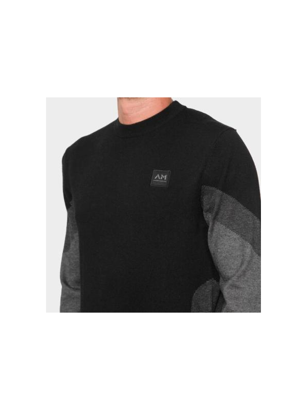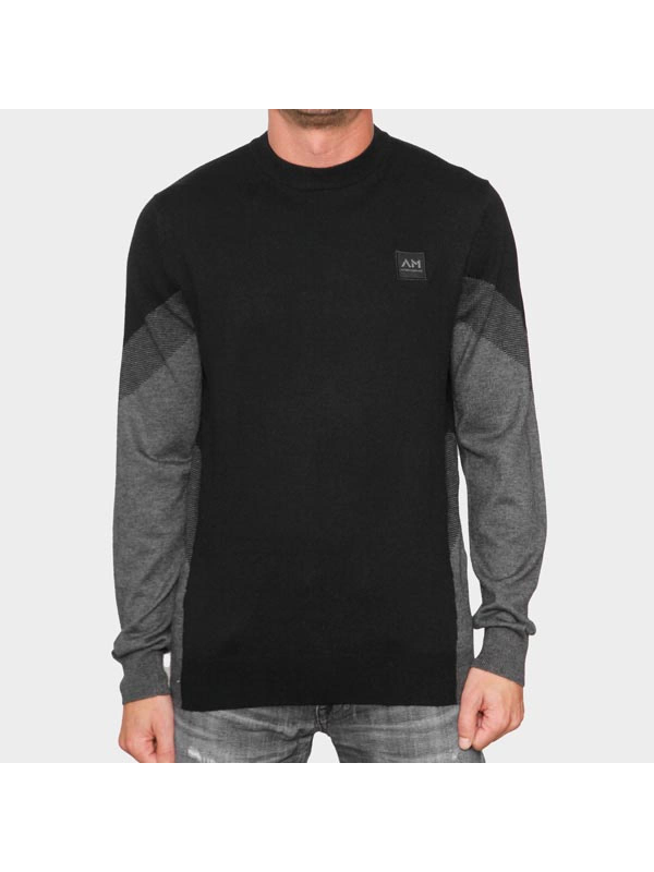 Muški crni Antony Morato pulover s okruglim izrezom sa sivim detaljima na rukavima i porubu te logom brenda na tkanini s prednje strane