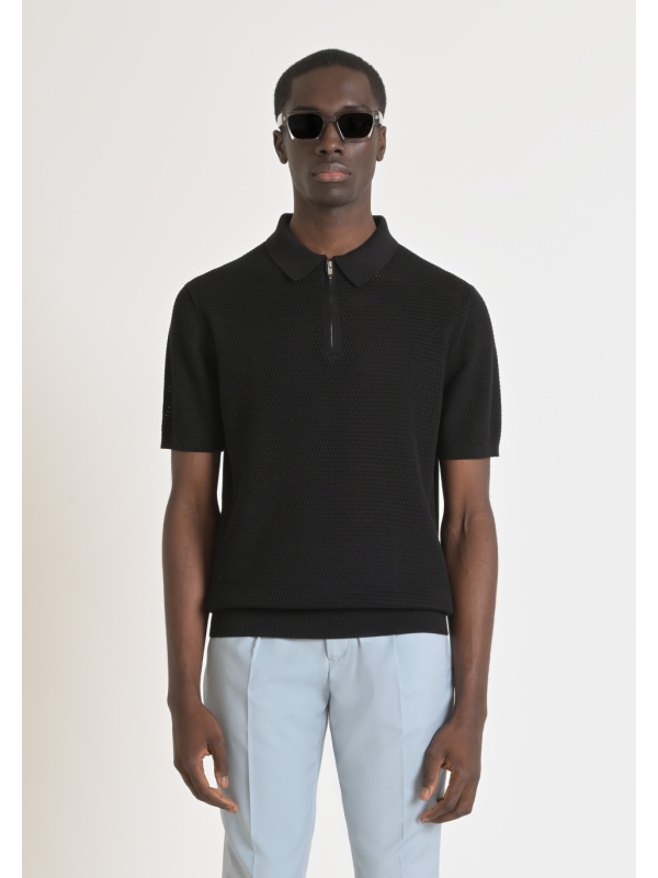 Muški crni Antony Morato pulover kratkih rukava s patetnim zatvaračem
