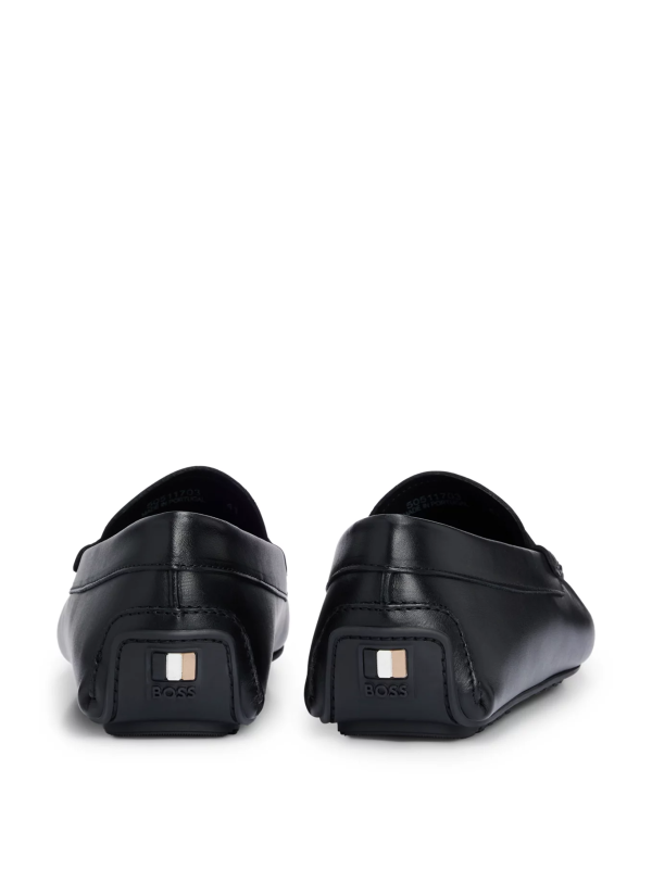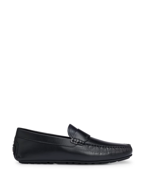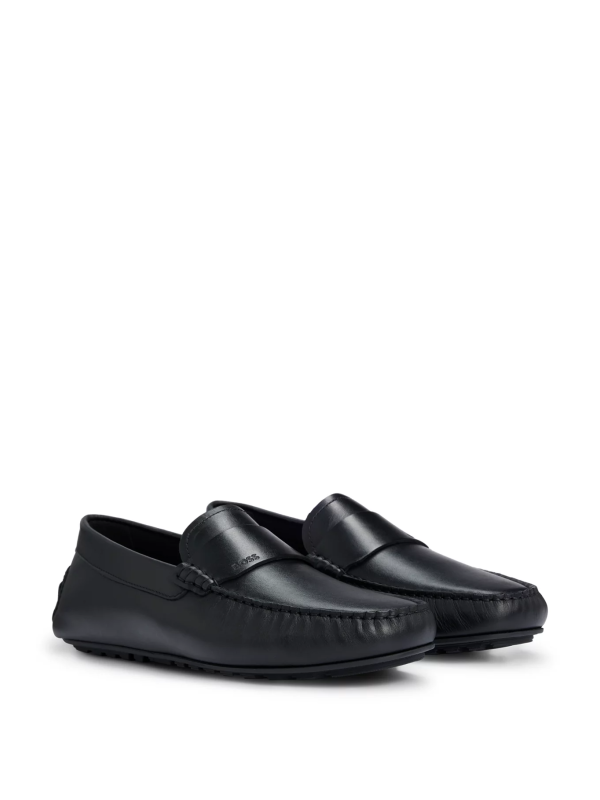 Crne mokasine s penny ukrasom od nappa kože s potplatom i utisnutim BOSS-ovim znakom.