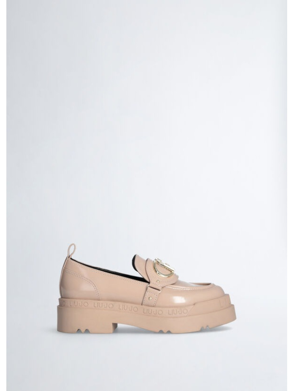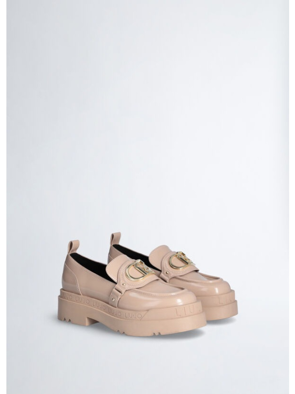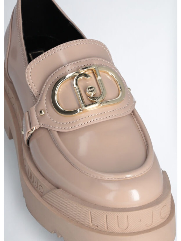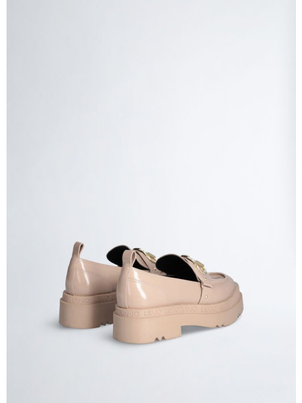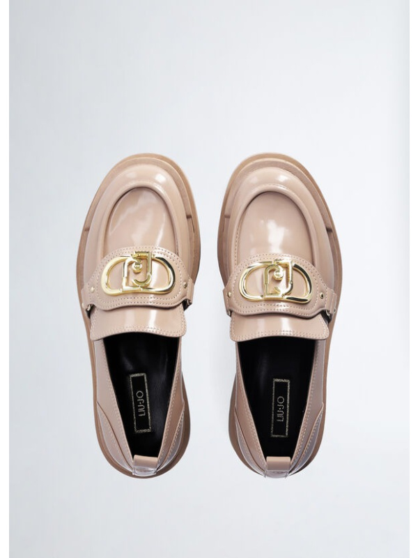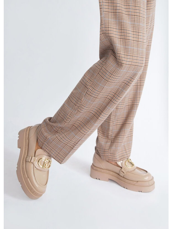 • Mokasine s kopčom i dodatkom s metalnim logotipom u 'nude' boji