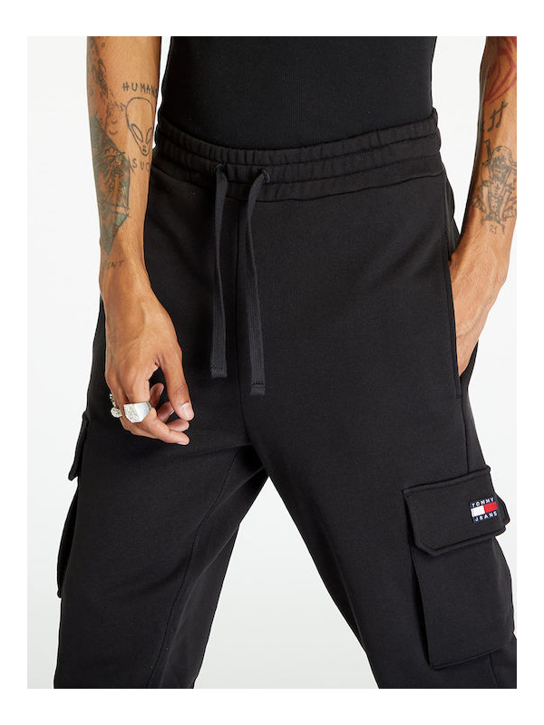 Muške crne Tommy Hilfiger kargo hlače s bočnim džepovima za casual look
