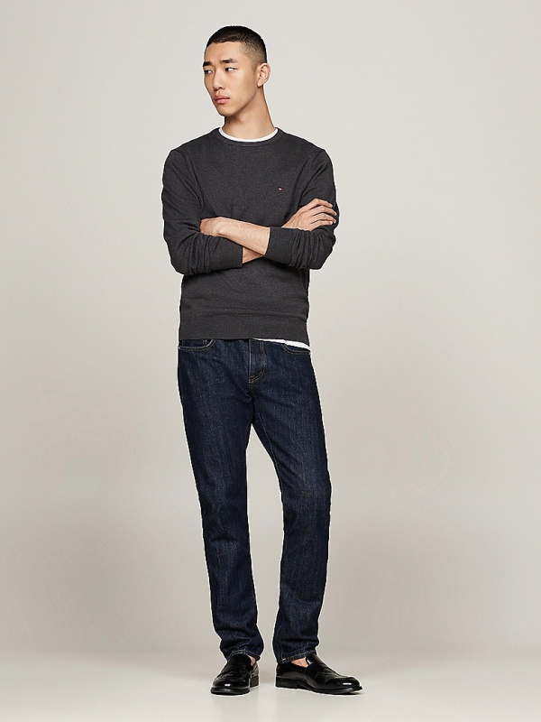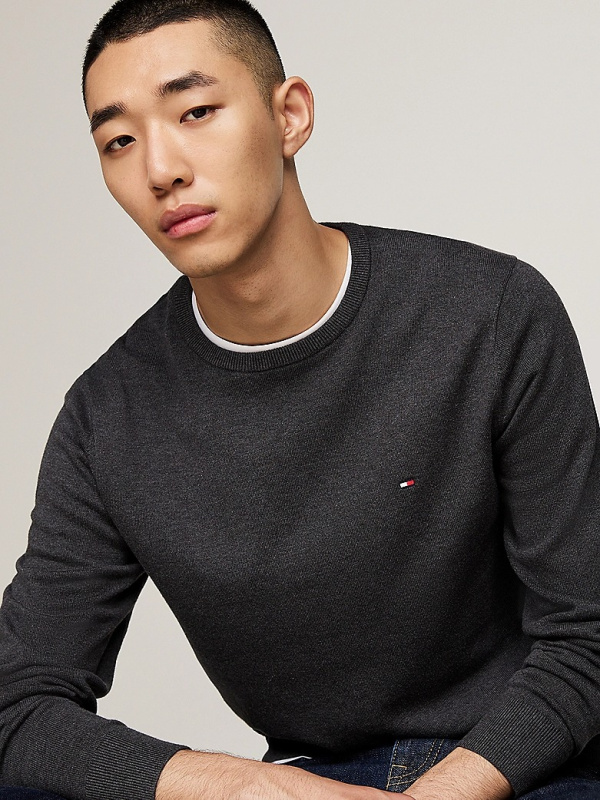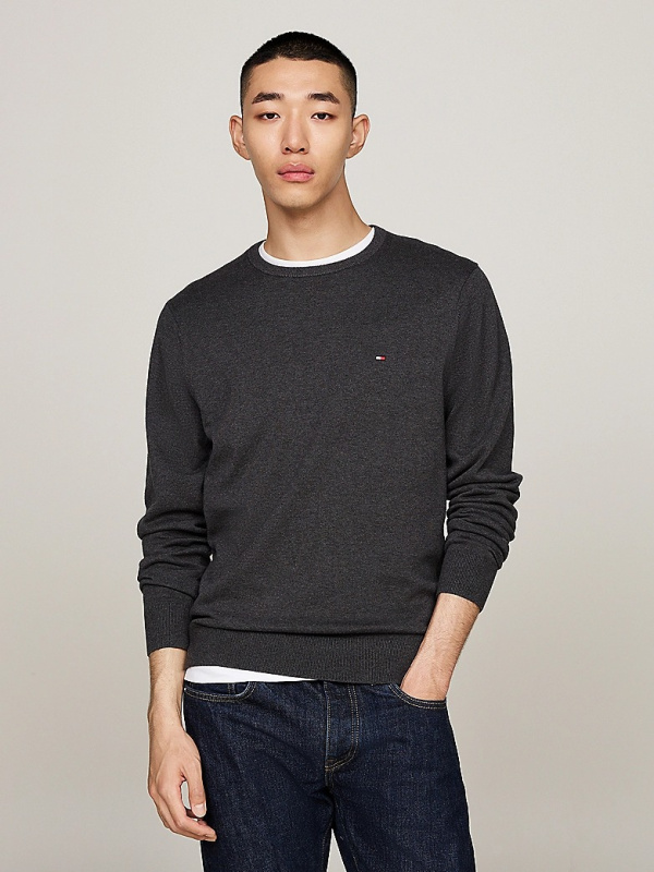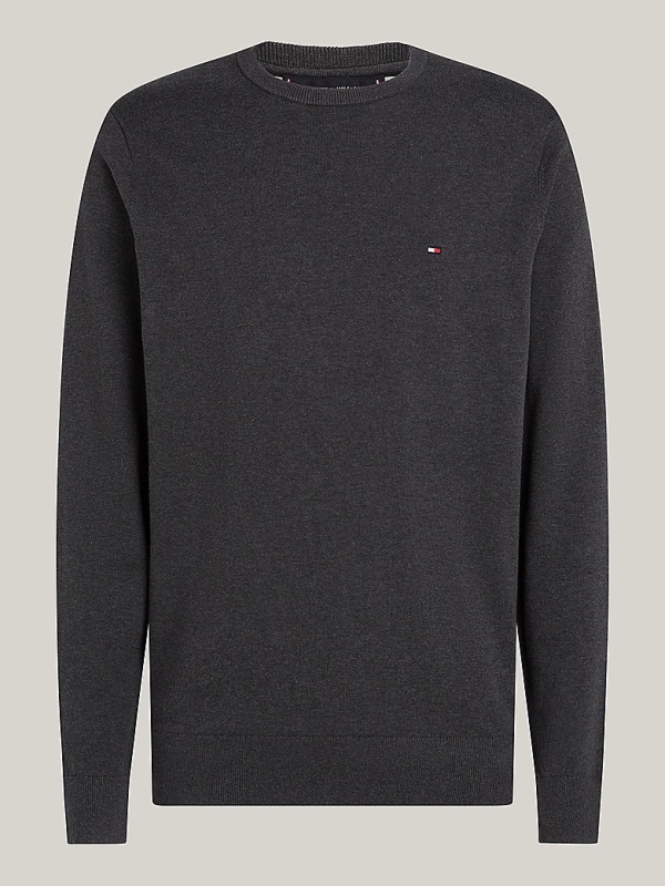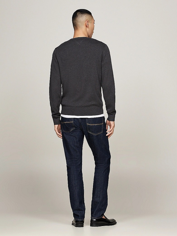 Muški Tommy Hilfiger tamnosivi džemper s okruglim izrezom i malim logom