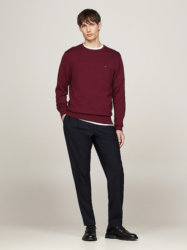 Muški Tommy Hilfiger bordo džemper s okruglim izrezom i malim logom