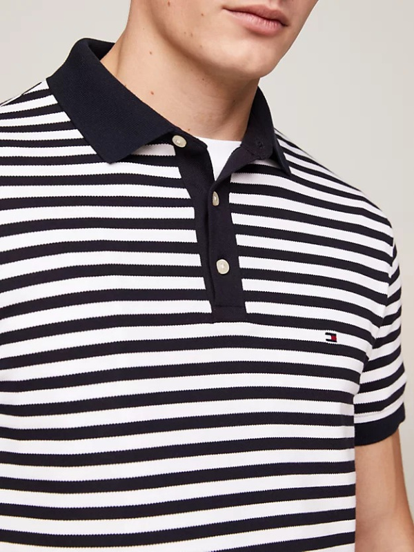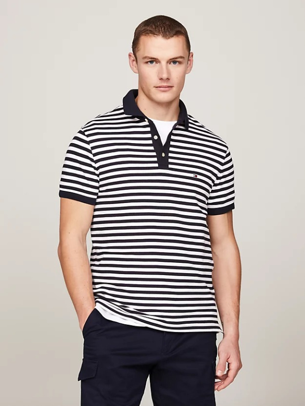 Muška Tommy Hilfiger tamnoplava polo majica na pruge s logom