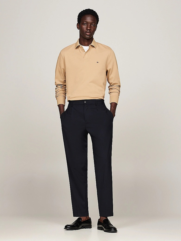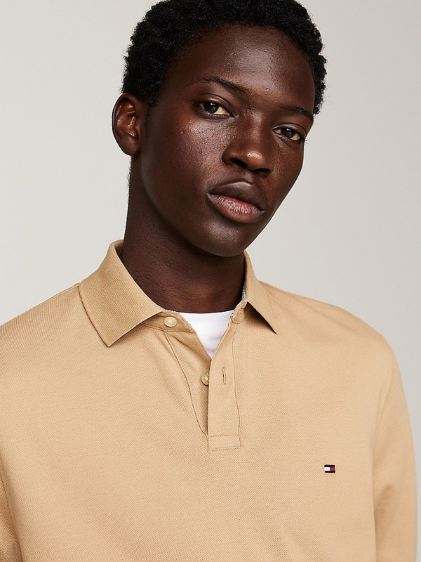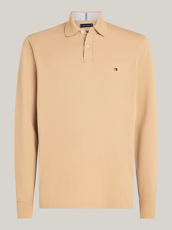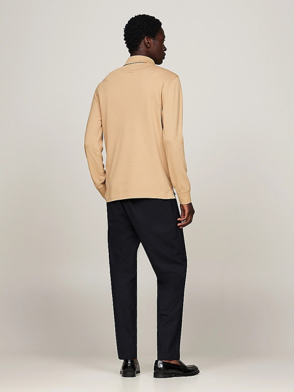 Muška Tommy Hilfiger polo khaki majica dugih rukava s malim logom