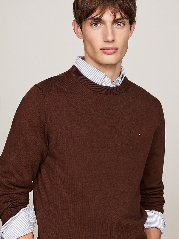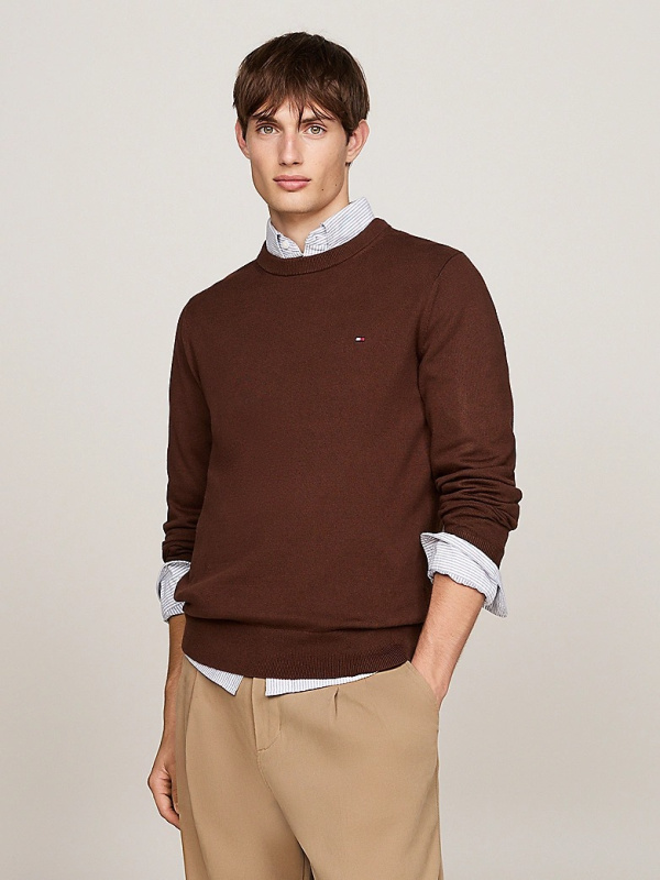 Muški tamnosmeđi Tommy Hilfiger pulover s logom na prsima