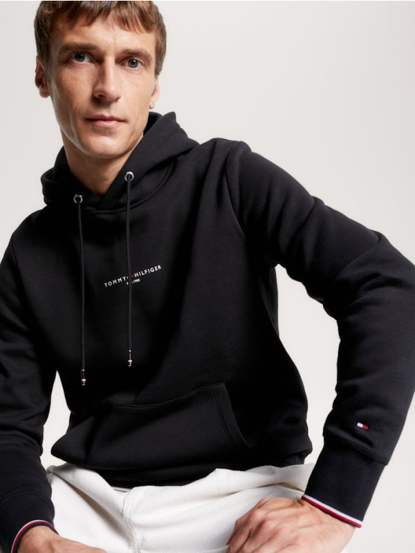Muška crna Tommy hilfiger dukserica s kapuljačom i logom na prsima