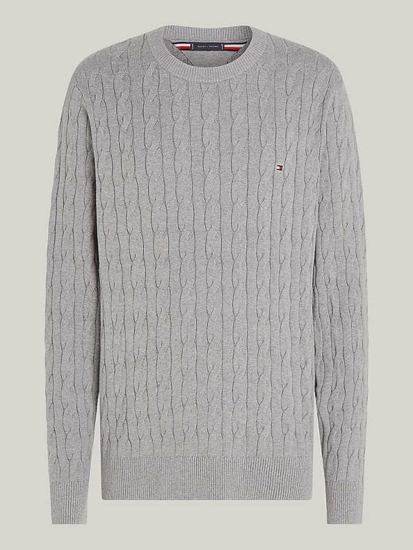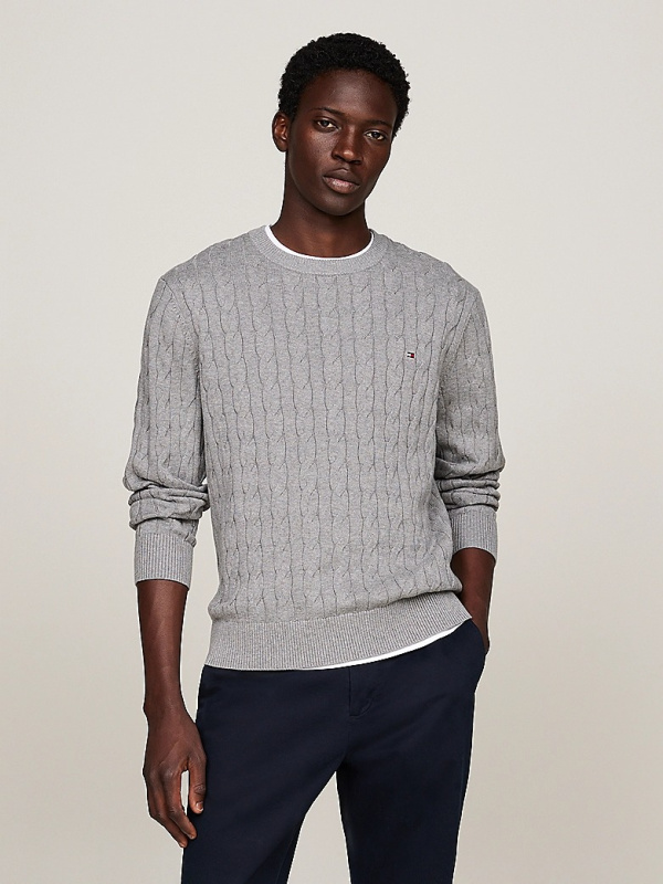 Muški sivi pleteni Tommy Hilfiger džemper s okruglim izrezom