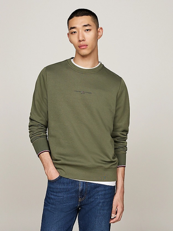 Muška maslinasto zelena Tommy Hilfiger majica dugih rukava s logom na prsima