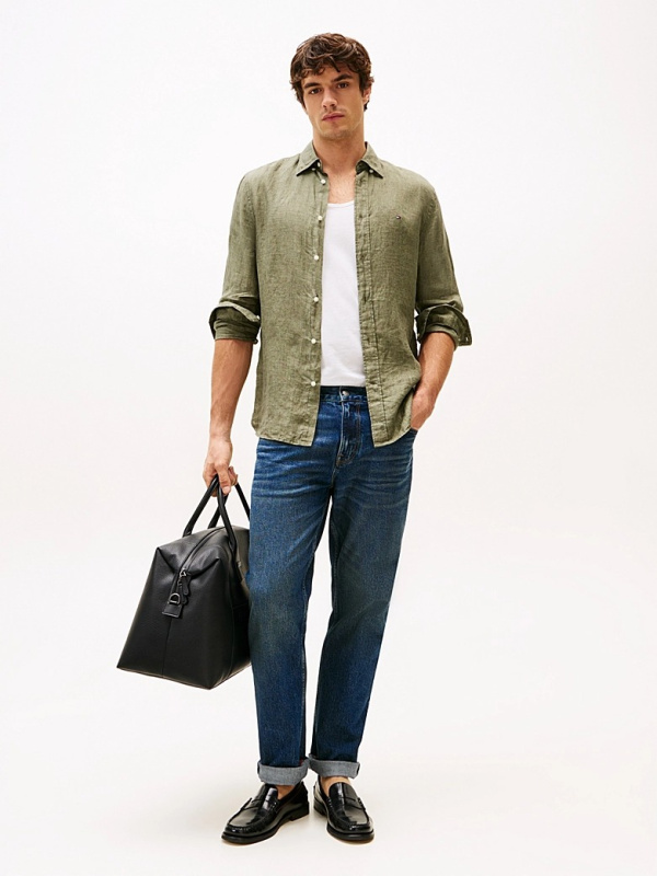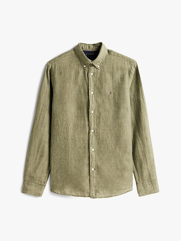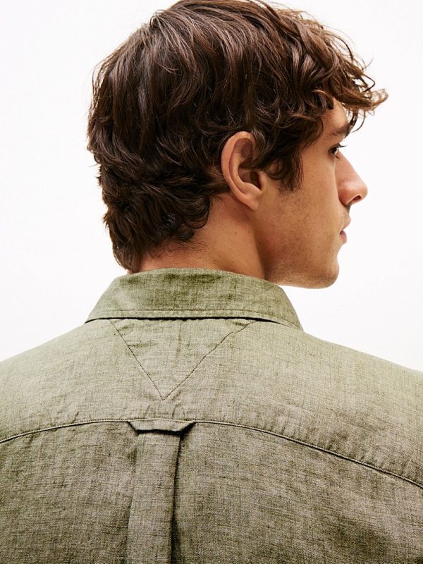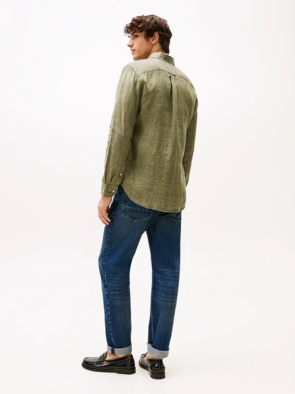 Muška military zelena Tommy Hilfiger lanena košulja dugih rukava s logom na prsima