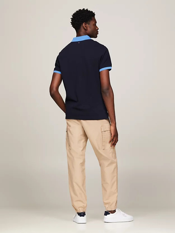 Kontrastni ovratnik, manšete i pojas naglašavaju klasičan stil ove polo majice, izrađene od rastezljivog organskog pamuka.