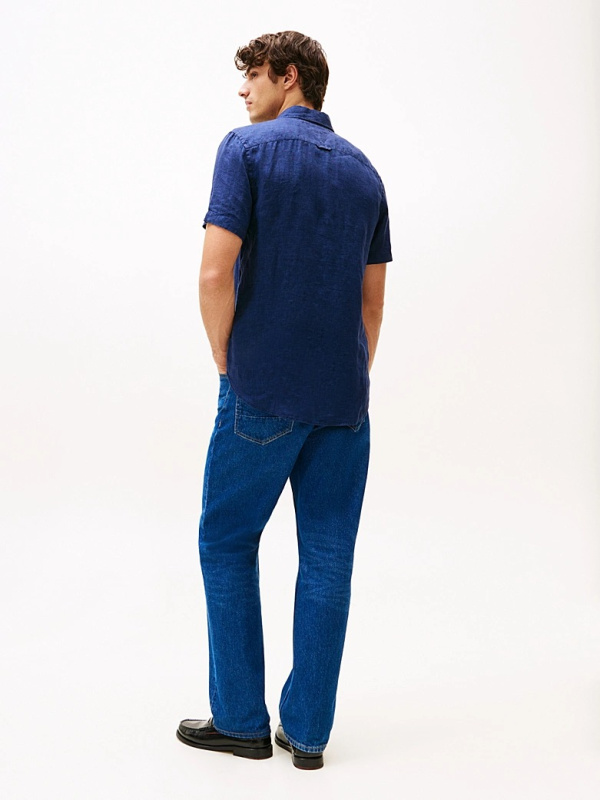 Ova košulja od čistog lana obojena je pigmentom za ležeran izgled i ima kratke rukave za ljetni osjećaj.