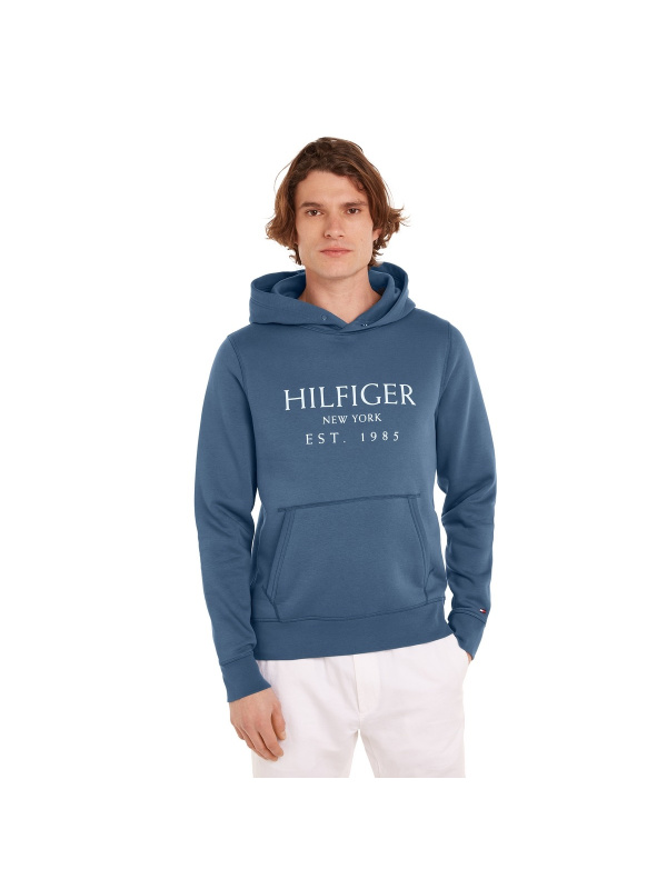 Muški plavi Tommy Hilfiger duks s kapuljačom, logom na prsima i klokan džepom