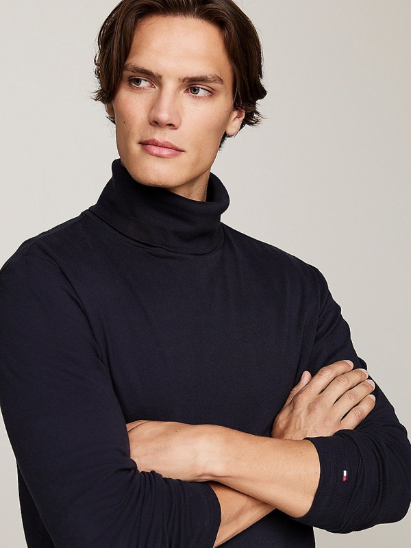 Muška tamnoplava Tommy Hilfiger majica dugih rukava s roll ovratnikom