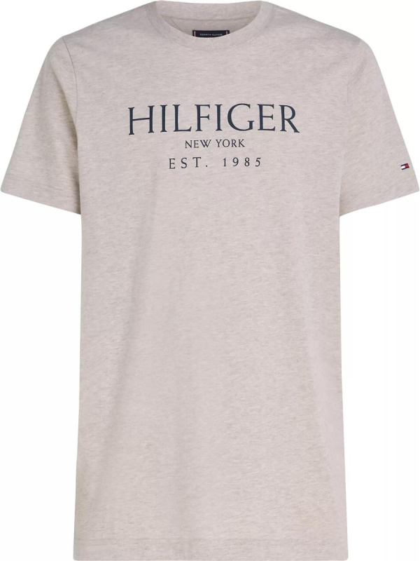 Muška svijetlosiva Tommy Hilfiger majica kratkih rukava s logo printom na prsima i zastavicom na rukavu