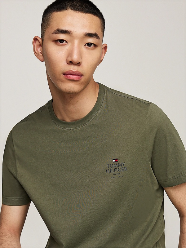 Muška maslinasto zelena Tommy Hilfiger majica kratkih rukava s logom na prsima