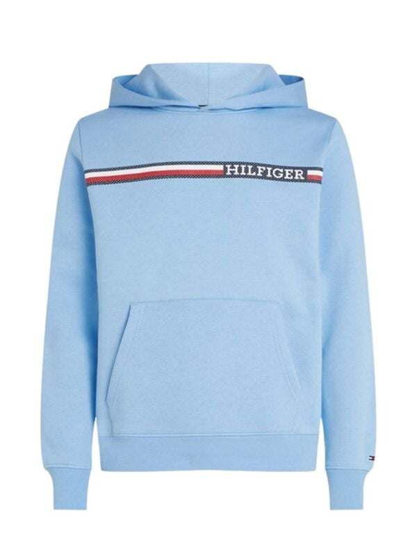 Muška svijetloplava Tommy Hilfiger dukserica s kapuljačom i stripe logom na prsima